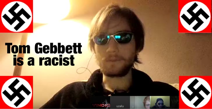 For over a year Tom Gebbett has agreed with, platformed, and championed Joshua John Banko on topics of race. Tom has done this as Uzalu on YouTube and on Twitter. Uzalu was well aware of Josh Banko's views and arguments beforehand, which are a blatantly racist. Yet he still came out in support of Josh, and continues to do so. Josh Banko has been known to compare minorities, and more specifically blacks, to dogs and crops. He also believes the black community inherently suffers from mental illness. Tom has agreed with Josh, and has shown support for him, by arguing online in favor of Josh Banko's views on the topic of race. He has also provided his channel, and joined Josh in hangouts to further his racist message.