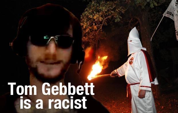 It is sad that racists like Tom Gebbett are sill spreading their disgusting ideas. To combat this many people have attempted to use imagery to get the word out to others that he is a dangerous person. See below for examples.